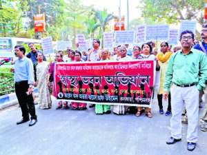 इसी के विरोध में मंगलवार को वॉयस ऑफ अभया, वॉयस ऑफ वुमेन की ओर से स्वास्थ्य भवन जाने के लिए एक रैली निकाली गयी.