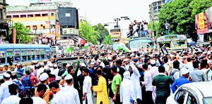 विरोध. प्रधानमंत्री नरेंद्र मोदी को एक करोड़ हस्ताक्षर के साथ ज्ञापन भेजेगा जमीयत-ए-उलेमा हिंदसंवाददाता, कोलकाता वक्फ (संशोधन) अधिनियम के खिलाफ गुरुवार को महानगर के रामलीला मैदान में एक विशाल विरोध प्रदर्शन हुआ. इस दौरान पश्चिम बंगाल के मंत्री और जमीयत-ए-उलेमा हिंद के प्रदेश अध्यक्ष सिद्दीकुल्लाह चौधरी ने घोषणा की कि कानून को निरस्त करने की मांग करते हुए “एक करोड़ हस्ताक्षरों” वाला एक ज्ञापन प्रधानमंत्री नरेंद्र मोदी को सौंपा जायेगा. जमीयत की प्रदेश इकाई द्वारा आयोजित विरोध प्रदर्शन में मुस्लिम समुदाय के लोगों की भीड़ उमड़ी. इसमें इसाइयों व सिखों ने भी हिस्सा लिया. सिद्दिकुल्लाह चौधरी ने सभा को संबोधित करते हुए कहा, “2014 में सरकार बनाने के बाद, भाजपा ने 1,159 अधिनियमों को निरस्त कर दिया.” उन्होंने कहा कि संगठन पूरे राज्य से “एक करोड़ हस्ताक्षर” एकत्र करेगा और जन-आंदोलन अभियान के तहत उन्हें प्रधानमंत्री को सौंपेगा. सिद्दिकुल्लाह चौधरी ने कहा, “हम जिले-दर-जिले, शहर-दर-शहर जायेंगे और हस्ताक्षर एकत्र करेंगे और उन्हें प्रधानमंत्री मोदी को सौंपेंगे. जन आंदोलनों के माध्यम से पहले भी कानूनों को निरस्त किया गया है और हमें विश्वास है कि यह कानून भी निरस्त हो जायेगा. ” उन्होंने यह घोषणा भी की कि जमीयत इस अधिनियम के खिलाफ कानूनी लड़ाई में मदद के लिए चंदा अभियान शुरू करेगी. पूर्व बर्दवान के मंगलकोट से विधायक सिद्दिकुल्ला चौधरी ने भाजपा और राष्ट्रीय स्वयंसेवक संघ (आरएसएस) पर नये कानून के जरिए मुस्लिम समुदाय को चुनिंदा तरीके से निशाना बनाने का आरोप लगाया.