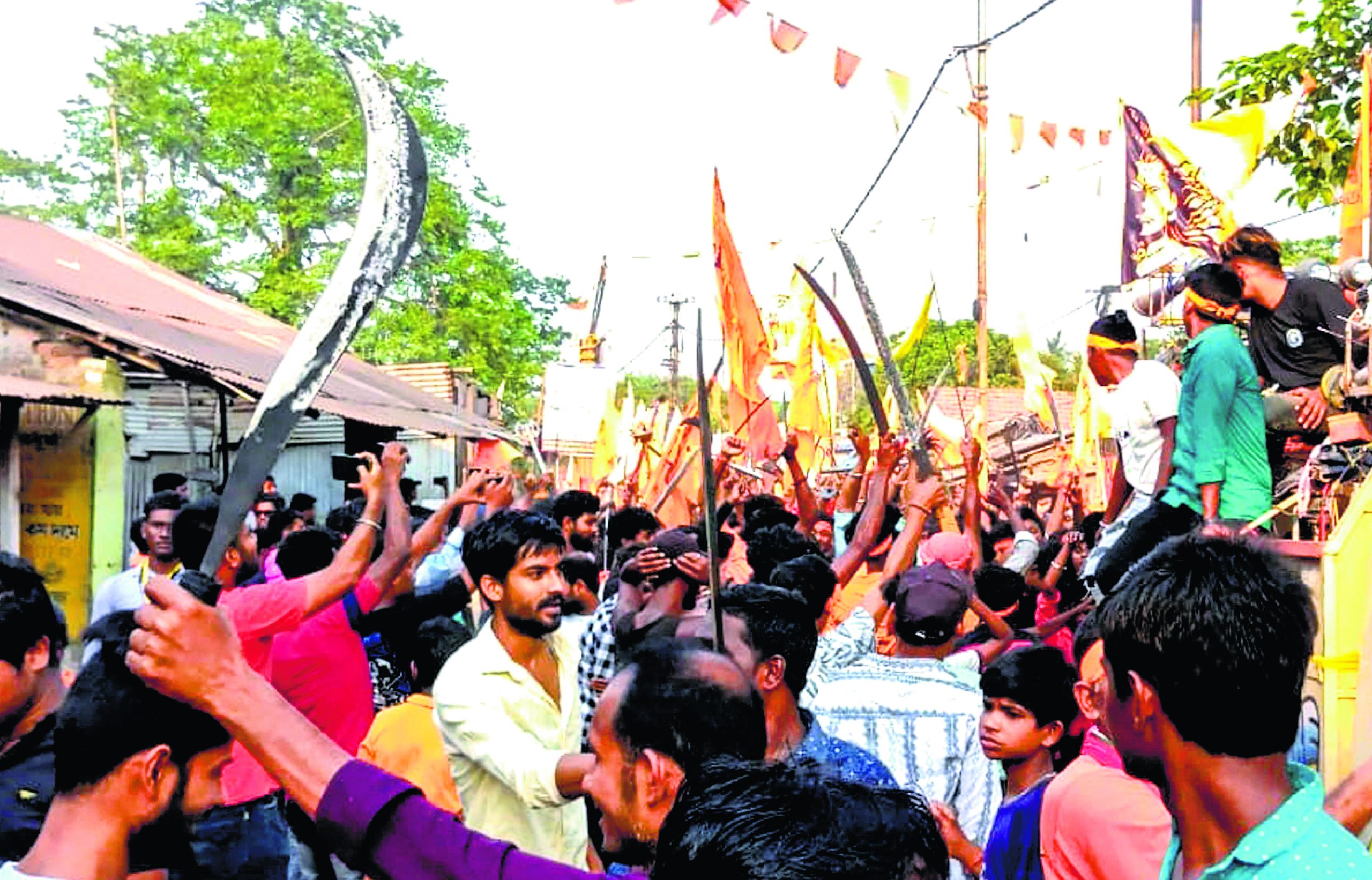 हुगली. रामनवमी के मौके पर चुंचुड़ा, रिसड़ा और श्रीरामपुर में भव्य शोभायात्रा निकाली गयी. चुंचुड़ा के रवींद्र नगर से विश्व हिंदू परिषद के बैनर तले शोभायात्रा की शुरुआत हुई. भगवान राम की प्रतिमा के साथ सैकड़ों श्रद्धालु शामिल हुए. इस मौके पर भाजपा के प्रदेश सचिव दीपांजन गुहा समेत जिले के अन्य नेता भी मौजूद थे. शोभायात्रा में कई भक्तों के हाथों में तलवार और त्रिशूल जैसे हथियार देखे गये. वहीं, दीपांजन गुहा ने कहा : जो पहले राम नाम से परहेज करते थे, आज वे भी राम नाम की यात्रा निकाल रहे हैं. हम सबका स्वागत करते हैं क्योंकि राम नाम की ओर सबका झुकाव हो रहा है. हथियार लेकर चलने के सवाल पर उन्होंने कहा कि हिंदू धर्म में आत्मरक्षा के लिए शस्त्र धारण करने की परंपरा रही है. हालांकि पुलिस प्रशासन की ओर से हथियार लेकर चलने की अनुमति नहीं थी. कई जगहों पर पुलिस ने हथियार भी जब्त किये. रिसड़ा और श्रीरामपुर में भी रामनवमी की शोभायात्रा निकली. यात्रा के अंत में कई श्रद्धालु तलवारें लहराते नाचते दिखे, लेकिन पुलिस को देख कई लोगों ने अपने हथियार छुपा लिए. पुलिस ने स्थिति पर निगरानी बनाए रखी.
