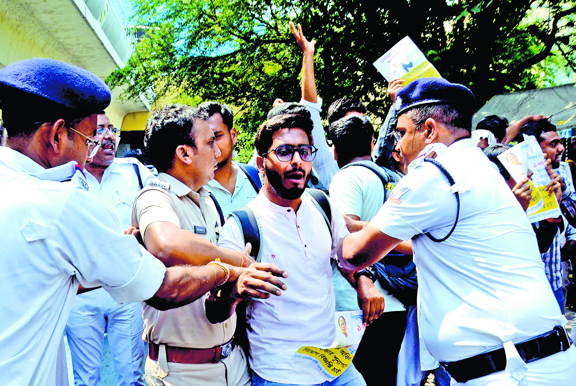 शिक्षक भर्ती घोटाले में सुप्रीम कोर्ट के फैसले के बाद गुरुवार को 2022 के टेट उत्तीर्ण (टीचर एलिजिबिलिटी टेस्ट) अभ्यर्थियों ने नौकरी की मांग कर सॉल्टलेक के विकास भवन अभियान किया. इस दौरान पुलिसकर्मियों द्वारा रोके जाने पर जमकर विरोध प्रदर्शन हुआ. पुलिसकर्मियों और प्रदर्शनकारियों के बीच झड़प भी हुई. बाद में विशाल पुलिस वाहिनी ने स्थिति को नियंत्रित किया.