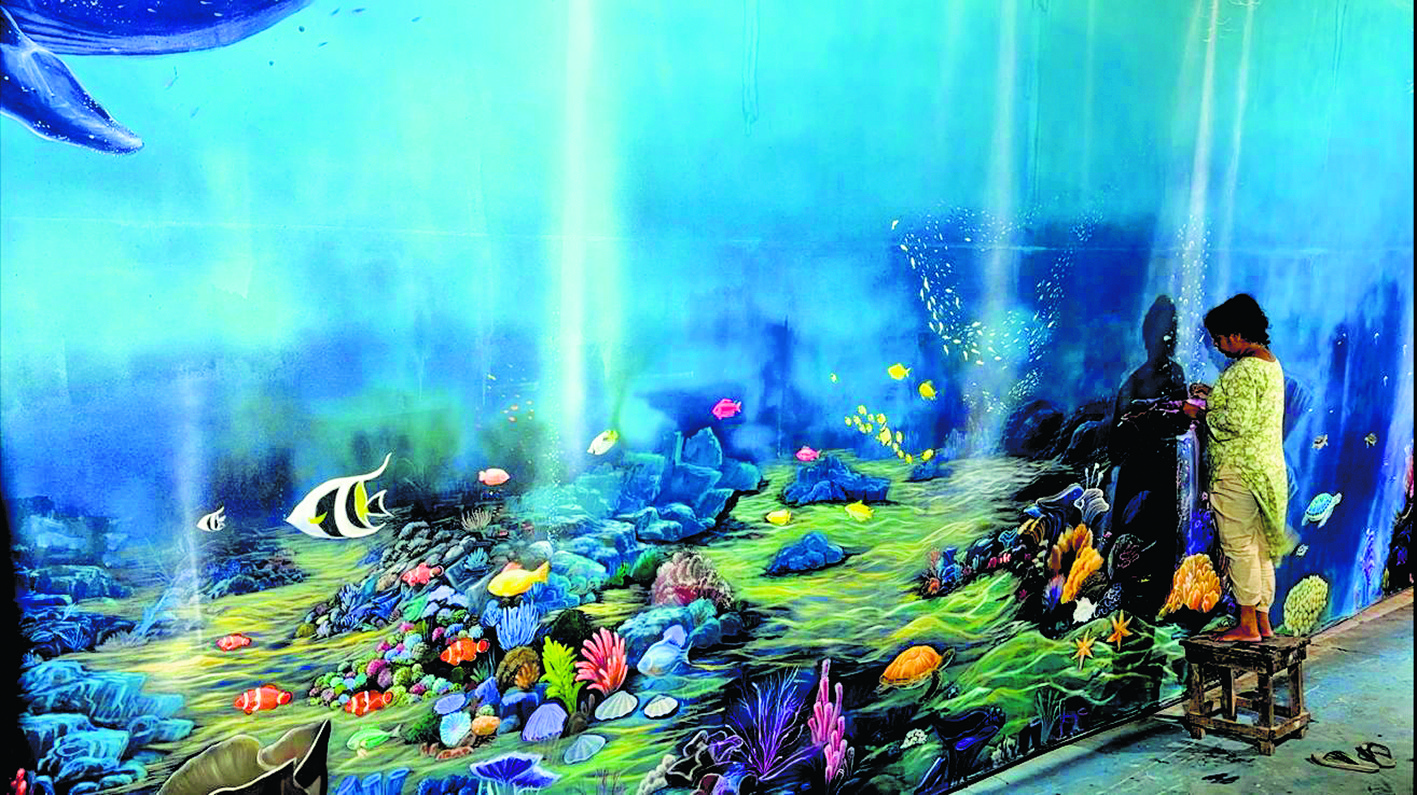 मंडप में प्रवेश करने वाले आगंतुक खुद को एक पवित्र समुद्र के भीतर महसूस करेंगे, जहां भक्ति सतह की गहराई के नीचे डूब जाती है. मंडप का इंटीरियर पानी के नीचे की दुनिया का दृश्य प्रस्तुत करता है, जिसमें मूंगे के महल, तैरती मछलियां और नाचती हुई डॉल्फिन की झलक दिखाई देगी. हर वस्तु आगंतुकों को प्राचीन मंदिरों की याद दिलाती है.पर्यावरण संरक्षण का संदेश