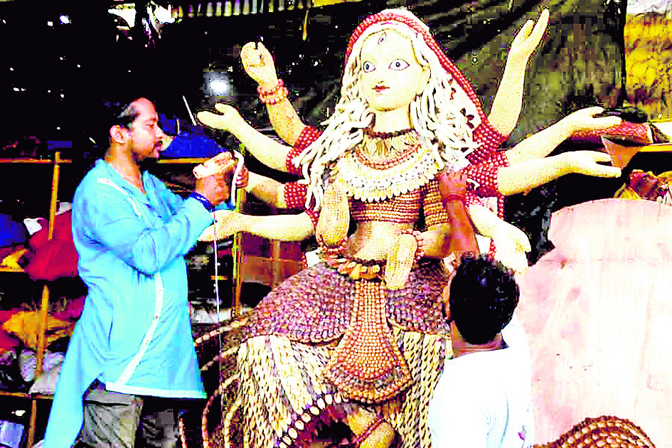 कोलकाता. दुर्गापूजा अब केवल आस्था का पर्व नहीं, बल्कि सामाजिक संदेश देने का एक सशक्त माध्यम भी बन चुका है. इसी क्रम में उत्तर 24 परगना के हाबरा (वाणीपुर) के मूर्तिकार इंद्रजीत पोद्दार ने इस बार पर्यावरण संरक्षण का अनूठा संदेश देने के लिए एक खास पहल की है. उन्होंने मां दुर्गा की प्रतिमा को पूरी तरह सूखे फूल, फल, पत्ते और पेड़ों के उच्छिष्ट हिस्सों से तैयार किया है. इंद्रजीत पोद्दार अपनी रचनात्मकता के लिए पहले भी सुर्खियों में रहे हैं. कभी मोती से, तो कभी बेकार पड़ी वस्तुओं से उन्होंने मां दुर्गा की भव्य प्रतिमा बनायी. इस बार प्रकृति से जुड़ी सामग्रियों को आधार बनाकर उन्होंने प्रतिमा निर्माण शुरू किया. जून से जारी इस कार्य में पहले मिट्टी से ढांचा तैयार हुआ, फिर थाईलैंड से लायी गयी पाटकाठी से प्रतिमा का शरीर बनाया गया. प्रतिमा का मुख बेल की माला से और केश फूलगोभी की जड़ों से गढ़े गये. सजावट भी उतनी ही अद्भुत है. मां दुर्गा की साड़ी, ओढ़नी और नख पपीते के पेड़ की छाल, पाइन और अखरोट के फूल की पंखुड़ियों, घासफूल और पाम की छाल से बनी है. चालचित्र में सीम के दाने और कड़बेल का इस्तेमाल किया गया है. यहां तक कि प्रतिमा के बिछुआ और आभूषण भी सूखे फूल-पत्तों से निर्मित हैं. करीब 11.5 फुट ऊंची और 7.5 फुट चौड़ी इस प्रतिमा के साथ अन्य देवताओं की ऊंचाई सात फुट रखी गयी है. खास बात यह है कि इस बार किसी देवी-देवता के हाथों में हथियार नहीं होंगे, बल्कि सभी की मुद्रा ‘अभय दान’ देने की होगी. पोद्दार के अनुसार, “पेड़ों के उच्छिष्ट हिस्सों से बनी यह प्रतिमा केवल कलात्मक प्रयोग नहीं, बल्कि समाज को यह संदेश देती है कि जिसे हम कचरा समझते हैं, वही वस्तुएं सुंदर और उपयोगी बन सकती हैं.” यह प्रतिमा कूचबिहार के खागड़ाबाड़ी सर्वजनीन शारदोत्सव मंडप में स्थापित होगी. आयोजकों ने इसे पर्यावरण संरक्षण की दिशा में सार्थक प्रयास बताया है. निस्संदेह, जब कला और पर्यावरण साथ आते हैं, तो उसका असर समाज पर और गहरा होता है. इंद्रजीत पोद्दार की यह पहल न केवल बंगाल, बल्कि पूरे देश के लिए प्रेरणादायक है.