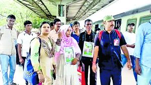 आरजी कर कांड के विरोध में अभया मंच द्वारा आयोजित नबान्न अभियान में शामिल होने के लिए कालीगंज की मृतका तमन्ना खातून के माता-पिता शनिवार सुबह नदिया जिले के पलाशी रेलवे स्टेशन से कोलकाता के लिए रवाना हुए. ट्रेन और स्टेशन परिसर में तमन्ना की मां ने साथी यात्रियों को राखी बांधकर भाईचारे और न्याय की अपील की. चौथी कक्षा की छात्रा तमन्ना खातून की मौत कालीगंज विधानसभा उपचुनाव के नतीजों की घोषणा वाले दिन हुए बम विस्फोट में हो गयी थी. परिवार का आरोप है कि घटना के बाद सत्तारूढ़ दल से जुड़े लोगों ने उन्हें लगातार धमकाया और यहां तक कि जान से मारने की धमकी दी. आरोपियों की गिरफ्तारी भी घटना के काफी समय बाद हुई. तमन्ना के माता-पिता का कहना है कि अभया को न्याय नहीं मिला. हमारी बेटी को भी न्याय नहीं मिला. इसलिए हम सड़क पर उतरने को मजबूर हैं. परिवार के अनुसार, घटना का विरोध करने वाले अन्य लोगों को भी धमकियां दी जा रही हैं.