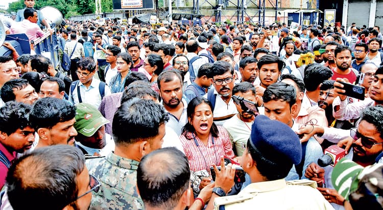 संवाददाता, हावड़ा सुप्रीम कोर्ट के आदेश के बाद नौकरी गंवाने वाले शिक्षकों के सोमवार को राज्य सचिवालय ‘नबान्न’ अभियान के दौरान उस समय स्थिति तनावपूर्ण हो गयी, जब पुलिस ने प्रदर्शनकारियों को हावड़ा मैदान के बंगवासी मोड़ के पास आगे जाने से रोक दिया. इस दौरान प्रदर्शनकारियों और पुलिस के बीच जमकर धक्का-मुक्की हुई. हालात बिगड़ता देख पुलिस ने माइकिंग के जरिये प्रदर्शनकारियों से कानून हाथ में नहीं लेने का आग्रह किया. करीब 40 मिनट तक हालात बेकाबू बने रहे. वहीं, इस अभियान को लेकर पुलिस ने सुरक्षा के पुख्ता इंतजाम किये थे. प्रदर्शनकारी किसी भी हाल में सचिवालय तक नहीं पहुंच सकें, इसके लिए बंगवासी मोड़, बंकिम सेतु के नीचे, मल्लिकफाटक, डीएम कार्यालय और फोरशोर रोड पर लोहे के 10 से 12 फीट ऊंचाई वाले बैरिकेड लगाये गये थे. करीब 2000 पुलिसकर्मियों के अलावा रैफ और कॉम्बैट फोर्स को इस अभियान के लिए तैनात रखा गया था. वॉटर कैनन मशीन को भी तैयार रखा गया था. सुरक्षा में किसी तरह की चूक नहीं हो, इसके लिए ड्रोन से भी निगरानी की गयी. नौकरी खोने वाले शिक्षक फिर अपने पद पर बहाली की मांग कर रहे हैं. नौकरी गंवाने वाले ‘योग्य’ शिक्षकों का कहना है कि वे फिर से परीक्षा देना नहीं चाहते. क्या है मामला: सुप्रीम कोर्ट ने तीन अप्रैल को कलकत्ता हाईकोर्ट के 2024 के फैसले को बरकरार रखते हुए वर्ष 2016 में स्कूल सेवा आयोग (एसएससी) द्वारा नियुक्त 25,753 शिक्षण और गैर-शिक्षण कर्मचारियों की नियुक्ति को रद्द करते हुए पूरी चयन प्रक्रिया को त्रुटिपूर्ण करार दिया था. कोर्ट के इस फैसले के बाद इन सभी शिक्षकों और गैर-शिक्षण कर्मियों की नौकरी चली गयी. इसके बाद से ही नौकरी में बहाली की मांग को लेकर इन शिक्षकों का प्रदर्शन जारी है. अप्रैल महीने में कसबा स्थित डीआइ कार्यालय के सामने इन शिक्षकों ने प्रदर्शन किया था. इस दौरान कोलकाता पुलिस ने प्रदर्शनकारियों पर लाठियां भी बरसायी थीं. इसी क्रम में सोमवार को नबान्न अभियान के तहत सात सूत्री मांगों को लेकर हजारों की संख्या में प्रदर्शनकारी हावड़ा पहुंचे थे. शिक्षक अधिकार मंच के बैनर तले ये प्रदर्शनकारी बंकिम ब्रिज होते हुए हावड़ा मैदान पहुंचे. प्रदर्शनकारी शिक्षक परीक्षा की ओएमआर शीट प्रकाशित करने, दागी और बेदाग उम्मीदवारों की पूरी सूची प्रकाशित करने तथा बिना शर्त नौकरी पर उनकी बहाली की मांग कर रहे थे. प्रदर्शन में शामिल चिन्मय मंडल ने कहा कि हमलोग अब परीक्षा नहीं देंगे.हमारे साथ अन्याय हुआ है. यह सरकार की जिम्मेदारी है कि वह हमें नौकरी पर बहाल करे. प्रदर्शनकारियों ने कहा कि मुख्यमंत्री दागी उम्मीदवारों को बचाने की कोशिश में हमलोगों के जीवन के साथ खिलवाड़ कर रही हैं. इसलिए वह हमसे मिलने से कतरा रही हैं 