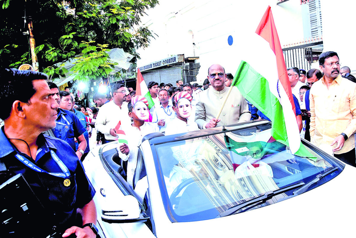 राज्यपाल सीवी आनंद बोस ने राष्ट्रीय गीत ‘वंदे मातरम’ के 150 साल पूरे होने के उपलक्ष्य में सोमवार को भारतीय संग्रहालय से राजभवन तक ‘वंदे मातरम मार्च’ का नेतृत्व किया.