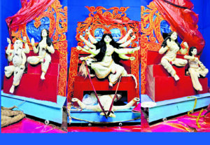 मटियाबुर्ज में आकर्षित कर रही मोतियों से बनी मां दुर्गा की प्रतिमा