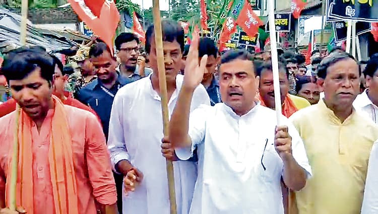 हल्दिया. कसबा स्थित लॉ कॉलेज में छात्रा से सामूहिक दुष्कर्म की घटना को लेकर भाजपा ने सत्तारूढ़ तृणमूल कांग्रेस पर हमला तेज कर दिया है. इसी क्रम में भाजपा द्वारा राज्यभर में कन्या सुरक्षा यात्रा निकाली जा रही है. मंगलवार को यह यात्रा मयना पहुंची, जहां विधानसभा में नेता प्रतिपक्ष और भाजपा नेता शुभेंदु अधिकारी भी शामिल हुए. इस दौरान उन्होंने ‘ममता हटाओ, कन्या बचाओ’ का नारा लगाया. शुभेंदु अधिकारी ने पत्रकारों से बातचीत में कहा : हम (भाजपा) ममता हटाओ, कन्या बचाओ के नारे के साथ सड़कों पर उतरे हैं. बेटी और कन्या बचाने के लिए राज्य की मुख्यमंत्री ममता बनर्जी को सत्ता से हटाना जरूरी है. बंगाल में एक के बाद एक नारी व महिलाओं के खिलाफ हिंसा की जितनी घटनाएं हो रही हैं, उसे देखते हुए बंगाल में महिलाएं तभी सुरक्षित रहेंगी जब इस राज्य की मुख्यमंत्री ममता बनर्जी को सत्ता से बाहर किया जायेगा.