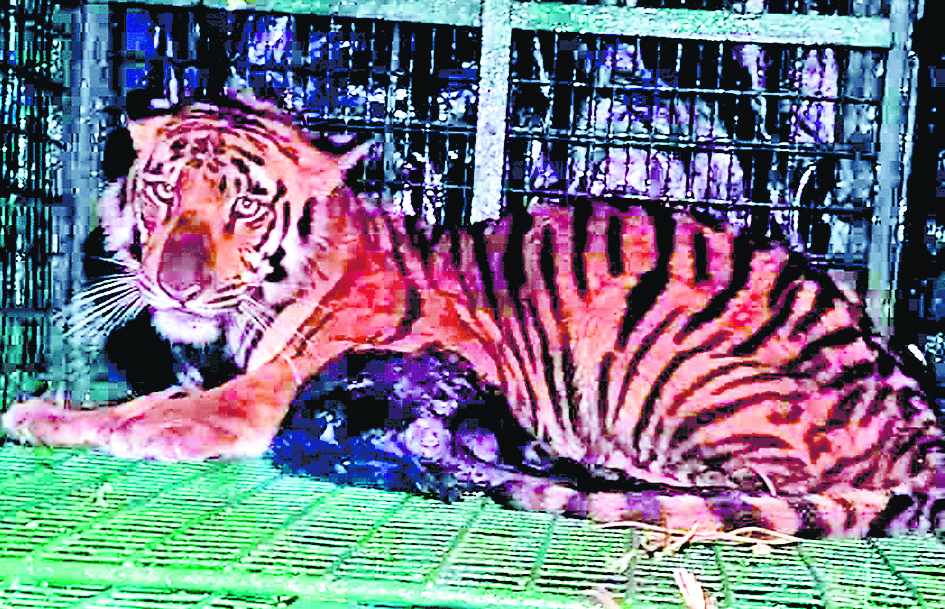 दक्षिण 24 परगना के सुंदरबन के मैपीठ इलाके में वन विभाग के कर्मचारी गणेश श्यामल पर हमला करने वाला बाघ आखिरकार मंगलवार को तड़के पकड़ लिया गया. वन विभाग के एक वरिष्ठ अधिकारी ने यह जानकारी दी. वन विभाग की डिविजनल फॉरेस्ट ऑफिसर (डीएफओ) निशा गोस्वामी ने बताया कि इस नर बाघ को मंगलवार तड़के लगभग 3.20 बजे एक पिंजरे के दरवाजे पर चारा रख कर फंसाया गया. उसे घने वन में छोड़ दिया जायेगा. यह बाघ तीन दिन पहले सुंदरबन टाइगर रिजर्व के अजमलमाड़ी जंगल से मैपीठ इलाके के नगेनबाद गांव में घुस आया था.सोमवार की सुबह जब बाघ को पकड़ने की कोशिश की जा रही थी, तभी उसने वन विभाग के एक कर्मचारी पर हमला कर दिया. कर्मचारी गंभीर रूप से घायल हो गया. गोस्वामी ने कहा कि घायल कर्मचारी गणेश श्यामल, बाघ की गतिविधियों पर नजर रखने वाली एक टीम का हिस्सा था. घायल कर्मचारी के शरीर पर कई गहरे जख्म आये हैं और फिलहाल कोलकाता के एसएसकेएम अस्पताल में उसका इलाज जारी है. अधिकारी ने बताया कि बाघ अचानक जंगल से निकल कर खेत में आया और वनकर्मी पर झपट पड़ा. वन विभाग के अन्य साथियों ने डंडों से हमला कर किसी तरह उसे भगाया.