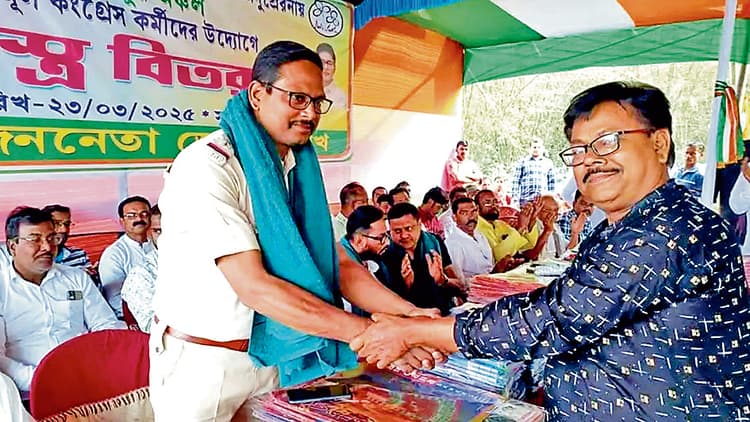 वायरल वीडियो में एक स्थानीय तृणमूल नेता कहते दिख रहे हैं कि आने वाले दिनों में पश्चिम बंगाल में भाजपा को हराकर तृणमूल चमकेगी. चापड़ा के तृणमूल कांग्रेस कार्यकर्ताओं की पहल पर क्षेत्र के विभिन्न स्थानों पर कपड़ा वितरण कार्यक्रम पिछले कुछ वर्षों से चल रहा है. चापड़ा के हृदयपुर के बाद बड़ी अंदुलिया चौकी के प्रभारी श्रीजीव सिन्हा वहां के हाथीशाला-2 इलाके में भी कपड़ा वितरण कार्यक्रम में नजर आये. वह हरे रंग का उत्तरीय पहनकर तृणमूल के मंच पर बोलते भी नजर आये. हालांकि सामने आई तस्वीरों और वीडियो की पुष्टि प्रभात खबर ने नहीं की है.
