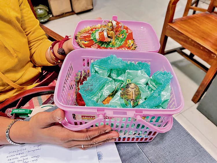 शेक्सपीयर सरणी थाना क्षेत्र स्थित एलबर्ट रोड के इस्कॉन मंदिर प्रांगण से चोरी हुई बाल गोपाल की दो मूर्तियां पुलिस ने सोने की दोनों चेन सहित बरामद कर ली हैं. यह मूर्तियां श्रीभूमि निवासी महिला मीता पाल की थीं, जिसने घटना की शिकायत स्थानीय थाने में दर्ज करायी थी. पुलिस सूत्रों के अनुसार, मीता पाल अपने साथ एक छोटी और एक बड़ी कुल दो बाल गोपाल की मूर्तियां लेकर चलती थी और मूर्तियों पर सोने की दो चेन भी थी. वह पांच नवंबर को दोनों मूर्तियां लेकर इस्कॉन मंदिर पहुंची थी. कुछ देर बाद उसे पता चला कि मूर्तियां मंदिर प्रांगण से गायब हो गयी हैं. उधर, शिकायत मिलने के बाद पुलिस ने आसपास लगे सीसीटीवी कैमरों की फुटेज खंगाले. फुटेज में एक महिला को मूर्तियां लेकर जाते हुए देखा गया. इसके आधार पर पुलिस ने बहूबाजार इलाके में आरोपी महिला की पहचान की और उसे पूछताछ के लिए हिरासत में लिया. पूछताछ के दौरान उसकी निशानदेही पर दोनों मूर्तियां और सोने की चेन बरामद कर ली गयीं. पुलिस अब यह पता लगाने में जुटी है कि उस महिला ने चोरी क्यों की?