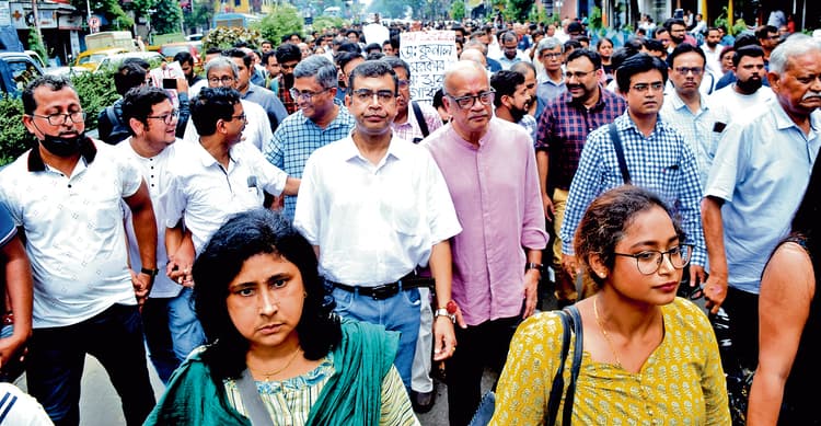 मेडिकल कॉलेज से शुरू हुए जुलूस को पुलिस ने फियर्स लेन-बीबी गांगुली स्ट्रीट क्रॉसिंग के पास रोक दिया, और दोनों चिकित्सकों को वरिष्ठ अधिकारी पुलिस मुख्यालय ले गये.
