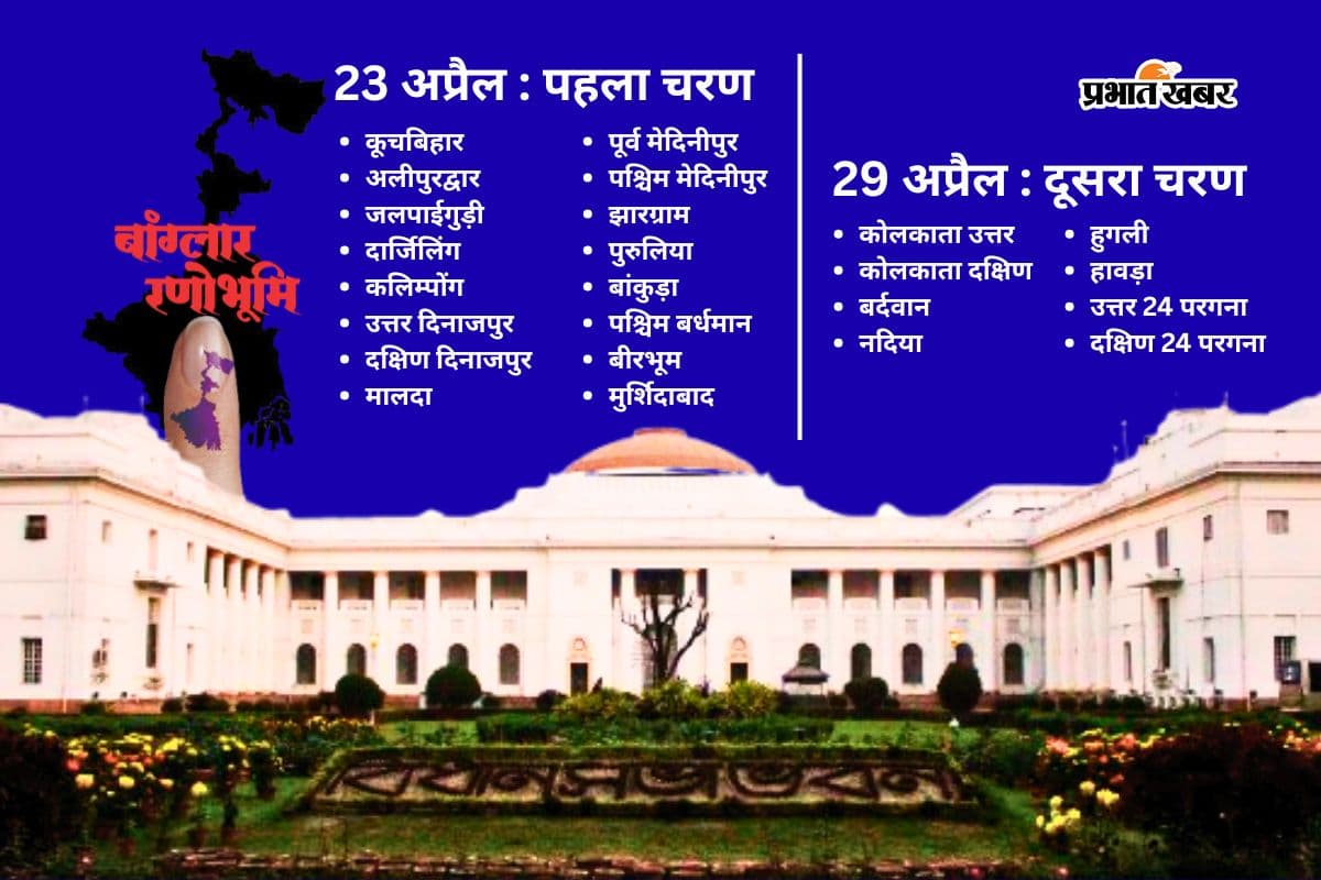 चुनाव आयोग ने चुनाव कार्यक्रम की घोषणा 15 मार्च को की. इसमें बताया कि पहले चरण में 23 अप्रैल को बंगाल की 294 में से 152 सीटों पर वोटिंग होगी. दूसरे चरण में 142 सीटों पर मतदान कराये जायेंगे. मतगणना 4 मई को होगी और उसी दिन स्पष्ट हो जायेगा कि बंगाल में किसकी सरकार बनेगी.