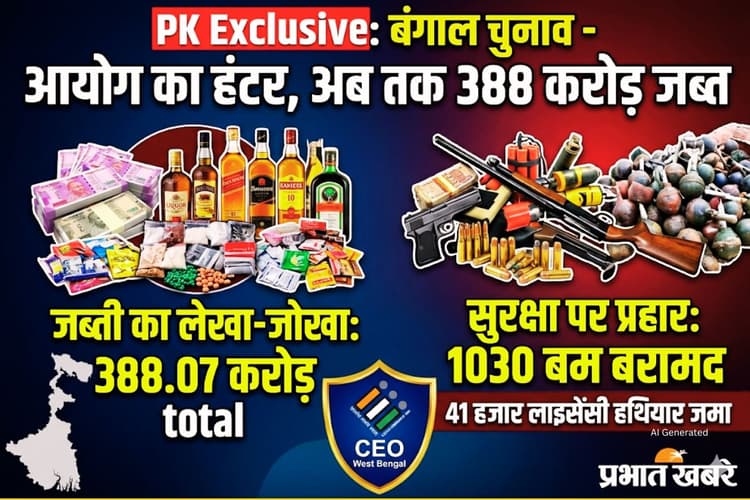 West Bengal Election 2026 Seizure Report: पश्चिम बंगाल विधानसभा चुनाव 2026 की तारीखें नजदीक आते ही निर्वाचन आयोग ने अपनी चौकसी बढ़ा दी है. मुख्य निर्वाचन अधिकारी (CEO) कार्यालय द्वारा जारी ताजा रिपोर्ट के अनुसार, राज्य में स्वतंत्र और निष्पक्ष मतदान सुनिश्चित करने के लिए चलाये जा रहे अभियान में अब तक 388.07 करोड़ रुपए की कुल जब्ती की गयी है.