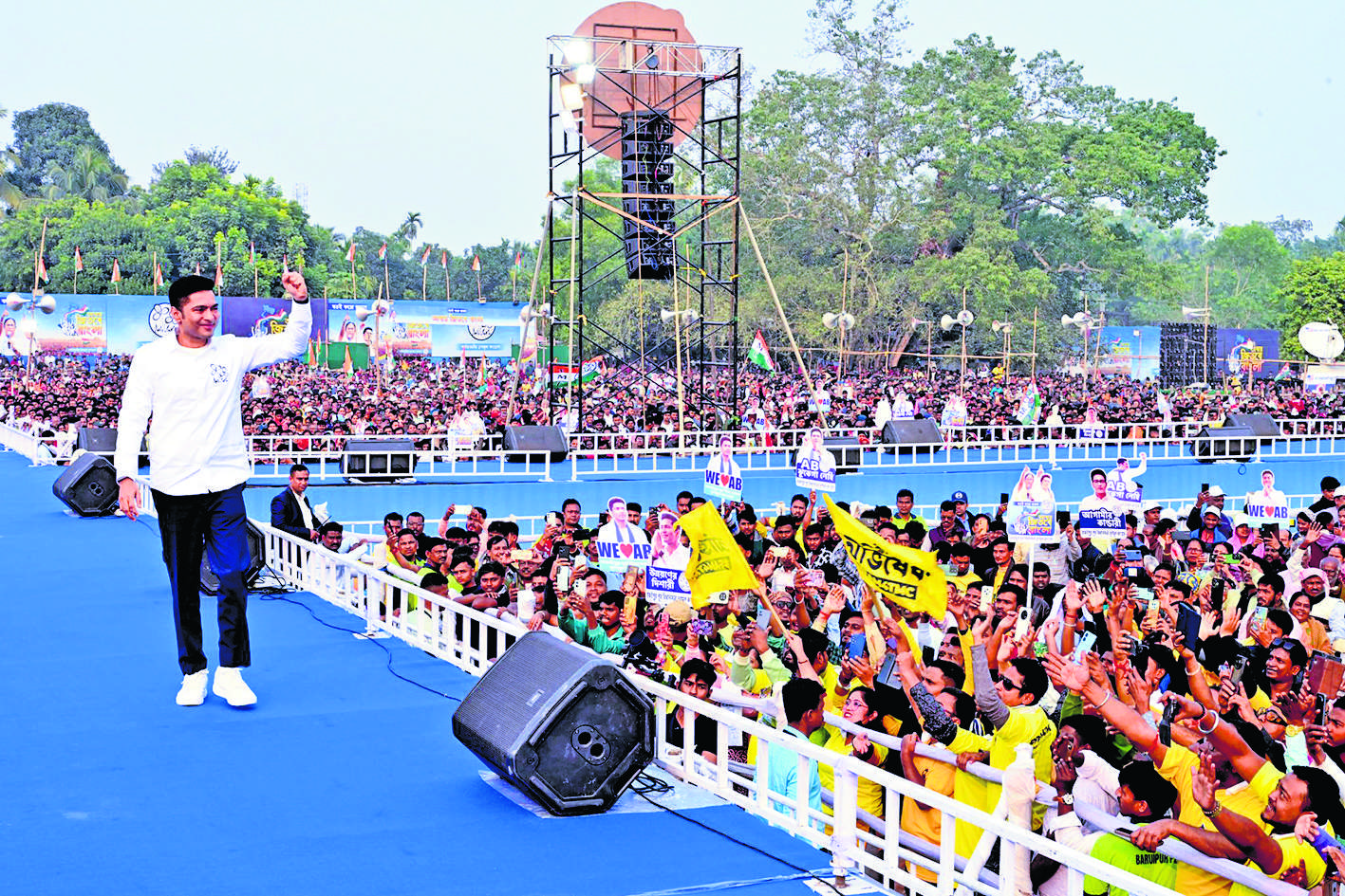 बोले अभिषेक. एसआइआर के मुद्दे पर जल्द मुख्य चुनाव आयुक्त से मिलेंगी ममता कोलकाता. तृणमूल कांग्रेस के राष्ट्रीय महासचिव और सांसद अभिषेक बनर्जी ने शुक्रवार को दावा किया कि आगामी विधानसभा चुनाव में पार्टी 2021 के मुकाबले अधिक सीटें जीतेगी. उन्होंने कहा कि वर्ष 2021 के विधानसभा चुनाव में तृणमूल कांग्रेस ने कुल 294 सीटों में से 213 सीटें हासिल की थीं और 2026 में पार्टी कम से कम एक सीट ज्यादा ही जीतेगी. दक्षिण 24 परगना जिले के बारुईपुर में आयोजित जनसभा को संबोधित करते हुए अभिषेक बनर्जी ने भाजपा पर जोरदार हमला बोला. उन्होंने आरोप लगाया कि केंद्र की बंगाल-विरोधी राजग सरकार ने राजनीतिक प्रतिशोध के तहत राज्य की सड़क परियोजनाओं, 100 दिन के ग्रामीण रोजगार, प्रधानमंत्री आवास योजना सहित कई केंद्रीय योजनाओं के लिए लंबे समय से फंड रोक रखा है. अभिषेक ने आरोप लगाया कि अब भाजपा और केंद्र सरकार चुनाव आयोग की मिलीभगत से विधानसभा चुनाव से पहले चल रहे एसआइआर के माध्यम से गरीब लोगों को उनके लोकतांत्रिक अधिकारों से वंचित करना चाहती है. उन्होंने दावा किया कि बिना पर्याप्त योजना और तैयारी के लागू की गयी मौजूदा एसआइआर प्रक्रिया के कारण राज्य में कई लोगों की मौत भी हो चुकी है. नये साल के दूसरे दिन आयोजित इस रैली के माध्यम से अभिषेक बनर्जी ने तृणमूल कांग्रेस के एक माह तक चलने वाले विशेष जनसंपर्क अभियान और चुनाव प्रचार की शुरुआत की. इस दौरान उन्होंने मुख्यमंत्री ममता बनर्जी के नेतृत्व में वर्ष 2011 से अब तक करीब 15 वर्षों के शासनकाल में हुए विकास कार्यों का रिपोर्ट कार्ड भी पेश किया. डायमंड हार्बर से सांसद अभिषेक बनर्जी ने पार्टी के जिला नेतृत्व को आगामी विधानसभा चुनाव में दक्षिण 24 परगना की सभी 31 विधानसभा सीटें जीतने का लक्ष्य दिया. उन्होंने पार्टी नेताओं और कार्यकर्ताओं से इन सभी सीटों पर जीत सुनिश्चित करने के लिए पूरी ताकत से जुटने का आह्वान किया. एसआइआर मुद्दे पर पार्टी का रुख स्पष्ट करते हुए अभिषेक ने कहा कि तृणमूल कांग्रेस लोगों के साथ कंधे से कंधा मिलाकर खड़ी रहेगी और वैध मतदाताओं को मताधिकार से वंचित करने के किसी भी प्रयास का डटकर विरोध करेगी. उन्होंने कहा कि यदि अंतिम मतदाता सूची में विसंगतियां पायी जाती हैं तो पार्टी उसे स्वीकार नहीं करेगी और बंगाल के लोगों के लोकतांत्रिक अधिकारों और गरिमा की रक्षा के लिए सड़क से लेकर अदालत तक लड़ाई लड़ेगी. भाजपा पर निशाना साधते हुए अभिषेक बनर्जी ने कहा, “मेरी बात याद रखना. 2026 के विधानसभा चुनाव में तृणमूल कांग्रेस 2021 के मुकाबले कम से कम एक सीट ज्यादा जीतेगी.” उन्होंने यह भी कहा कि इससे पहले वह मुख्य चुनाव आयुक्त को यह एहसास करा चुके हैं कि एक बंगाली क्या होता है.