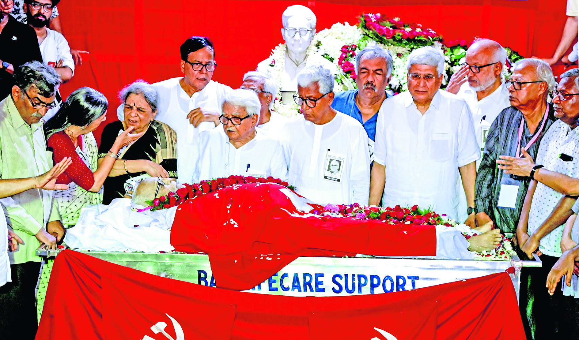 कोलकाता. पूर्व मुख्यमंत्री बुद्धदेव भट्टाचार्य को यहां मार्क्सवादी कम्युनिस्ट पार्टी (माकपा) के राज्य मुख्यालय में शुक्रवार को अंतिम विदाई देने के लिए सैकड़ों की संख्या में लोग पहुंचे. शोक संतप्त लोगों में से कुछ ने नम आंखों से, जबकि कइयों ने मुट्ठी बांधकर लाल सलामी के जरिये भट्टाचार्य को श्रद्धांजलि दी. कई लोग भट्टाचार्य की तस्वीरें भी लिए हुए थे. माकपा के राज्य मुख्यालय में अंतिम दर्शन के लिए रखा गया भट्टाचार्य का पार्थिव शरीर लाल झंडे में लिपटा और फूलों से ढका हुआ था. पार्टी के वरिष्ठ सदस्यों के साथ-साथ अनुभवी नेताओं से लेकर युवा राजनेताओं ने भट्टाचार्य को श्रद्धांजलि दी. पार्टी मुख्यालय पर मौजूद लोगों ने भट्टाचार्य को शिक्षा, स्वास्थ्य सेवा और औद्योगिक विकास में सुधार की दिशा में उनके प्रयासों के लिए याद किया और बताया कि कैसे उनके दृष्टिकोण ने भविष्य की प्रगति के लिए आधार तैयार किया था. माकपा के दिग्गज नेता ने राज्य के राजनीतिक परिदृश्य पर एक अमिट छाप छोड़ी है. उन्हें राज्य के औद्योगिकीकरण के प्रयासों के लिए जाना जाता था. विस्तृत खबर पेज 02 पर