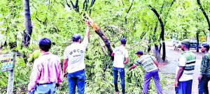 दुर्गापुर. चक्रवाती तूफान रेमाल का असर दुर्गापुर में भी दिखा है. रविवार शाम ही आकाश में घने बादल छा गये और आंधी चलने लगी. तेज हवाओं के साथ बारिश भी होने लगी, जो सोमवार को भी जारी रही. चक्रवात के चलते शहर में आम जनजीवन अस्त-व्यस्त हो गया है. शहर के कई इलाकों में भारी क्षति होने की खबर है. दुर्गापुर स्टेशन बाजार, स्टील टाउनशिप के साथ तटवर्ती इलाकों दामोदर बेराज, मानाग्राम, वारिया, श्यामपुर सहित कई बस्तियों मैं आंधी-पानी के कारण कई मकान क्षतिग्रस्त हो गये हैं. सोमवार सुबह सिटी सेंटर की कोर्ट बिल्डिंग के पास एक पेड़ टूट कर गिर गया, जिससे कोर्ट में आनेवालों को भारी परेशानी झेलनी पड़ी. सूचना पाते ही दुर्गापुर नगर निगम की क्विक रेस्पांस टीम वहां पहुंची और सड़क से पेड़ के हिस्सों को काट कर हटाने में जुट गयी. ऐसी ही स्थिति स्टील टाउनशिप के कई इलाकों में भी रही. डीएसपी नगर प्रशासन विभाग ने राहत कार्य शुरू कर दिया है. वहीं, प्रशासन की ओर से निर्देश है कि चक्रवाती तूफान के समय शहर के लोगों अपने घरों में ही सुरक्षित रहें.
