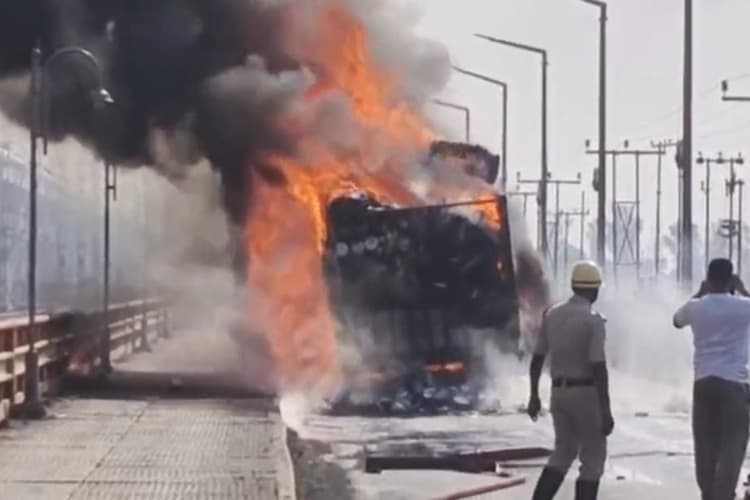 विकास जायसवाल, फरक्का : पश्चिम बंगाल के फरक्का में आग लगने की बड़ी घटना हुई है. जानकारी के अनुसार पश्चिम बंगाल और झारखंड की सीमा से सटे फरक्का से गुजरने वाली गंगा नदी के ब्रिज पर गेट नंबर 84 के समीप एक चलती हुई ट्रक में अचानक आग लग गई. देखते ही देखते पूरा ट्रक जलकर खाक हो गया. गनिमत ये रही कि हादसे में चालाक एवं खलासी बाल बाल बच गए.