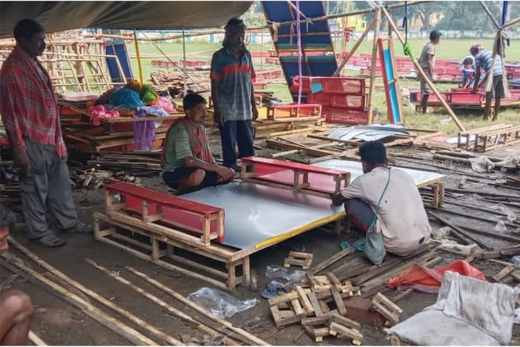 यह पंडाल 2 महीने से तैयार किया जा रहा है. प्रत्येक दिन 15 से 20 कारीगर युद्धस्तर पर कार्य करके पूजा पंडाल को तैयार करने में जुट गये है.यह पंडाल पूरा चमकदार फाइबर से बनाया जा रहा है और देखने में काफी सुंदर लग रहा है. धेमोन कोलवरी का पूजा पूरे शिल्पाचंल में काफी मशहूर है.