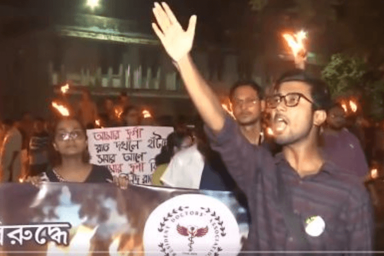कोलकाता के आरजी कर मेडिकल कॉलेज और अस्पताल में जूनियर डॉक्टर के साथ हुए दुष्कर्म और हत्या मामले में के विरोध में आज पश्चिम बंगाल के सिलीगुड़ी में मेडिकल कॉलेज के छात्रों ने मशाल जुलूस निकाल कर विरोध प्रदर्शन निकाला. इस दौरान उन्होंने नारे लगाकर न्याय मांगा.