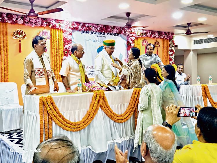 रानीगंज के सीताराम भवन में भारत के केंद्रीय मंत्री अर्जुन राम मेघवाल ने यहां के व्यापारियों के साथ एक बैठक की. मौके पर यहां के व्यापारियों ने केंद्रीय मंत्री के सामने व्यापार से संबंधित अपनी समस्याएं बयान की ,और केंद्रीय मंत्री ने आश्वासन दिया कि वह उन समस्याओं को हल करने की दिशा में पहल करेंगे. अर्जुन राम मेघवाल ने व्यापारियों से पूछा कि और नियमों में किन-किन परिवर्तन के जरूरत है जिससे कि उनको पारदर्शिता के साथ व्यापार करने में सुविधा हो .व्यापारियों ने इस मुद्दे पर अपनी राय व्यक्त की . इस मौके पर यहां विश्व हिन्दू परिषद के जिला अध्यक्ष मनोज सराफ, रवि केसरी श्री श्री सीताराम जी मंदिर कमेटी के अध्यक्ष विमल बाजोरिया आदि उपस्थित थे. इस बैठक के बाद अर्जुन राम मेघवाल ने रानीगंज स्तिथ नव निर्मित श्री खाटू श्याम मंदिर में श्री खाटू श्याम का दर्शन किये.डिस्क्लेमर: यह प्रभात खबर समाचार पत्र की ऑटोमेटेड न्यूज फीड है. इसे प्रभात खबर डॉट कॉम की टीम ने संपादित नहीं किया है