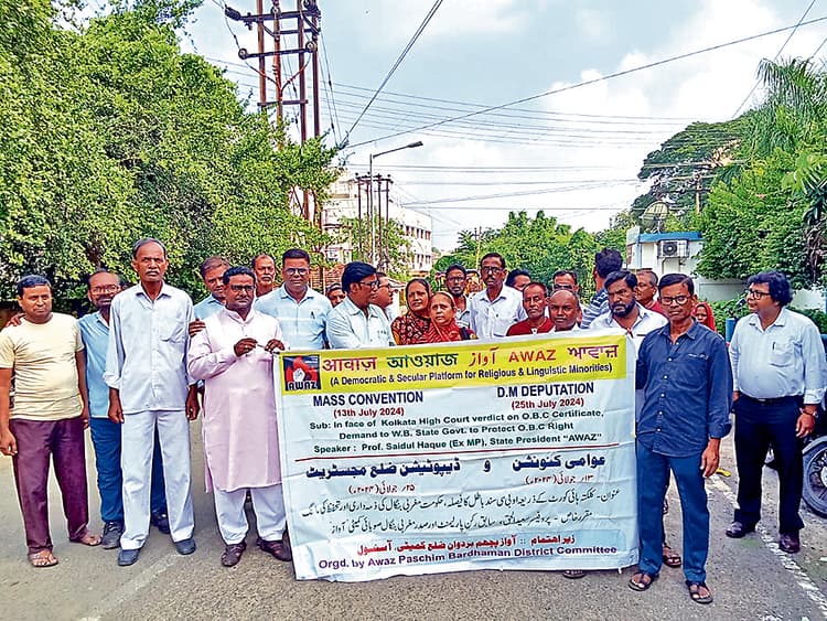 ‘आवाज’ संगठन ने ओबीसी मुद्दों को लेकर जिलाधिकारी को ज्ञापन सौंपा. धार्मिक और भाषाई अल्पसंख्यकों के संगठन आवाज की पश्चिम बर्दवान जिला समिति ने ओबीसी मुद्दे के समाधान के लिए कार्यक्रम के तहत पश्चिम बर्दवान जिला मजिस्ट्रेट को एक ज्ञापन सौंपा. आवाज जिला समिति के एक प्रतिनिधि प्रतिनिधिमंडल ने जिला मजिस्ट्रेट से मुलाकात की. ओबीसी सर्टिफिकेट बचाने के लिए सुप्रीम कोर्ट में अपील दायर करने की मांग की. गौरतलब है कि हाल ही में कलकत्ता हाई कोर्ट की एक खंडपीठ ने राज्य के करीब पांच लाख ओबीसी प्रमाणपत्रों को रद्द कर दिया है. राज्य के कुल 180 ओबीसी अनुसूचित समूहों में से 114 समूहों की मान्यता रद्द कर दी गयी है, जिनमें 110 अल्पसंख्यक समुदाय समूह भी शामिल हैं. संगठन ने मांग की है कि राज्य सरकार को फैसले को निलंबित करने के लिए सुप्रीम कोर्ट में मामला दायर करना चाहिए. राज्य सरकार को यह सुनिश्चित करने के लिए उचित कदम उठाने होंगे कि पिछली वामपंथी सरकार द्वारा पिछड़े अल्पसंख्यकों के मामले में दिये गये 10% अतिरिक्त आरक्षण बरकरार रहे. संगठन के पश्चिम बर्दवान जिला समिति के सचिव नौमान असफर खान के अलावा कौसर हुसैन, मुहम्मद सलाउद्दीन, मरगूब राही, डॉ नजर इमाम, आफताब आलम, मोहम्मद नौशाद, नदीम अंजुम खान, अधिवक्ता प्रशांत घोष, रफत परवेज आदि मौजूद थे. आवाज जिला कमेटी की ओर से मोहम्मद जहांगीर, अरशद सिद्दीकी, शेख अब्दुल कय्यूम, मुना अहीर, चार्टर पासवान, शेख अजीज अल अमन, शाहनाज परवीन, कनीज फातिमा और संगठन के सैकड़ों समर्थक उपस्थित थे.डिस्क्लेमर: यह प्रभात खबर समाचार पत्र की ऑटोमेटेड न्यूज फीड है. इसे प्रभात खबर डॉट कॉम की टीम ने संपादित नहीं किया है