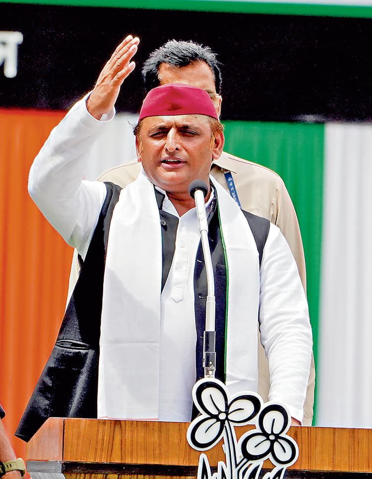बोले अखिलेश यादव शहीद दिवस की रैली में मुख्यमंत्री ममता बनर्जी के साथ ही उत्तर प्रदेश के पूर्व मुख्यमंत्री व समाजवादी पार्टी (सपा) के प्रमुख अखिलेश यादव मंच पर पहुंचे. सभा को संबोधित करते हुए उन्होंने ममता बनर्जी की जमकर तारीफ की, वहीं भाजपा पर हमला भी बोला. उन्होंने कहा, “ केंद्र में भारतीय जनता पार्टी (भाजपा) के नेतृत्व वाली राष्ट्रीय जनतांत्रिक गठबंधन (राजग) की सरकार ज्यादा समय तक नहीं चल पायेगी, क्योंकि सांप्रदायिक ताकतों को भले ही कुछ समय के लिए सफलता मिल सकती है, लेकिन अंततः उनकी हार होगी. जो लोग केंद्र की सत्ता में आये हैं, वे बस कुछ दिनों के मेहमान हैं.” सपा प्रमुख ने अपने दिये वक्तव्य में तृणमूल प्रमुख बनर्जी और पार्टी कार्यकर्ताओं की जमकर सराहना भी की है.