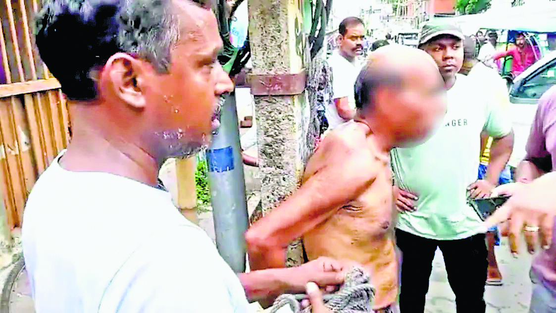 कल्याणी. उत्तर दिनाजपुर के चोपड़ा की घटना के बाद मंगलवार को भी ऐसी ही एक अमानवीय घटना नदिया जिले के नवद्वीप के बुड़ोशिवतला रोड इलाके में घटी. यहां एक चाय दुकानदार पर सात हजार रुपये नहीं देने पर बिजली के खंबे से वृद्ध को बांध कर पीटने का आरोप लगा है. इलाके के लोगों ने नवद्वीप थाना पुलिस को फोन किया इसकी सूचना दी. पुलिस तुरंत पर आकर उस शख्स की जान बचायी. घटना का वीडियो भी सोशल मीडिया पर वायरल हो गया. हालांकि प्रभात खबर इस वीडियो की सत्यता की पुष्टि नहीं करता है. सूचना मिलने पर नवद्वीप थाने की पुलिस मौके पहुंची और आरोपी चाय दुकानदार व पीड़ित वृद्ध को थाने ले गयी. जांच अधिकारी दोनों से पूछताछ कर घटना के बारे में पूरी जानकारी हासिल करने की कोशिश कर रही है. बताया जाता है कि कनाई देबनाथ नामक शख्स की नवद्वीप में चाय की दुकान है. चाय की दुकान नवद्वीप हिंदी स्कूल के सामने है. कनाई के मुताबिक, तमलतला निवासी अरूप साहा नामक उक्त वृद्ध ने काम देने के नाम पर उनसे सात हजार 250 रुपये लिये थे. लेकिन आरोप है कि पैसे लेने के बावजूद वृद्ध ने उसे काम नहीं दिया. कनाई ने मंगलवार को अरूप को अपनी दुकान के सामने से गुजरते हुए देखा. इसके बाद चाय दुकानदार ने उसे पकड़ लिया और एक खंभे से बांध दिया. यह देख स्थानीय व्यवसायी व राहगीर खड़े हो गये. उन्होंने चाय दुकानदार से यह भी पूछा कि वृद्ध को खंभे से क्यों बांधा गया है. हालांकि, पैसों के बारे में सुन कर कई लोगों ने हस्तक्षेप नहीं किया. दोनों से पूछताछ जारी है.