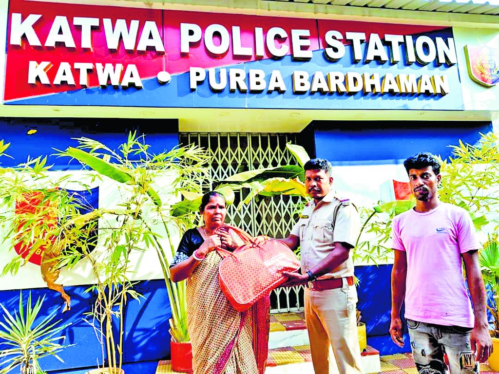 पूर्व बर्दवान के कटवा थाने की पुलिस ने महज एक घंटा में ही एक महिला का टोटो में छूटा लाखों के आभूषणों से भरा बैग बरामद कर उसे सौंप दिया.