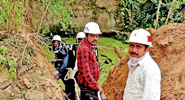 आसनसोल दक्षिण थाना अंतर्गत कुमारपुर टीलाबांध इलाके में स्थित एक परित्यक्त खदान के पानी में एक सिर कटा शव को तैरता देखकर इलाके में दहशत फैल गयी. प्रत्यक्षदर्शियों ने इसकी सूचना पुलिस को दी. पुलिस ने मौके पर पहुंचकर माइंस रेस्क्यू टीम तथा फायर ब्रिगेड को बुलाया. दोनों टीम के संयुक्त प्रयास से शव को परित्यक्त खदान (चानक) से बाहर निकाला गया. पुलिस ने शव को कब्जे में लेकर पोस्टमार्टम के लिए उसे आसनसोल जिला अस्पताल भेज दिया है. अभी तक शव की शिनाख्त नहीं की जा सकी है. गौरतलब है कि माइंस रेस्क्यू तथा फायर रेस्क्यू की टीम को चानक के भीतर प्रवेश करने के लिए एक रास्ता बनाने की जरूरत थी. जिसे देखते हुये एक जेसीबी की मदद से एक मीटर चौड़ा एक रास्ता बनाया गया. उसके बाद रेस्क्यू टीम के एक सदस्य को रस्सी से बांधा गया. आक्सीजन सिलिंडर लेकर कर्मी ने पानी में उतरकर शव को खींच कर किनारे पर लाया. जिसके बाद शव को चानक से बाहर निकाला गया. पुलिस शव की शिनाख्त करने में जुट गयी है. इसके अलावा यह भी पता लगाया जा रहा है कि शव का सिर कहां है.डिस्क्लेमर: यह प्रभात खबर समाचार पत्र की ऑटोमेटेड न्यूज फीड है. इसे प्रभात खबर डॉट कॉम की टीम ने संपादित नहीं किया है