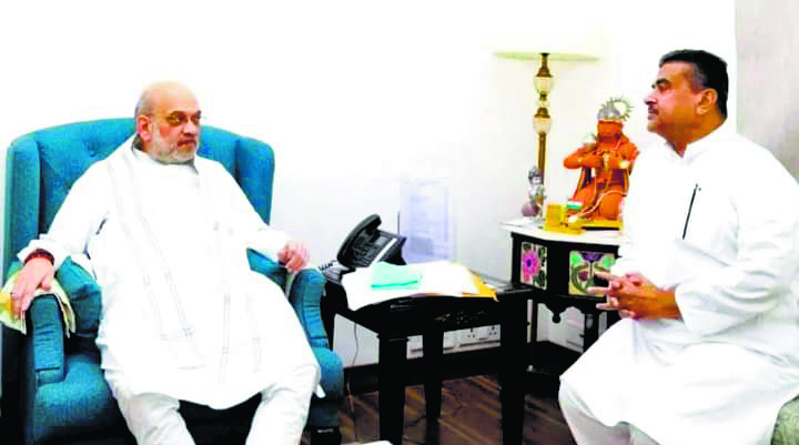 शुभेंदु अधिकारी मंगलवार को अचानक बिना किसी पूर्व निर्धारित कार्यक्रम के दिल्ली रवाना हो गये. वहां उन्होंने संसद भवन में केंद्रीय गृह मंत्री अमित शाह से मुलाकात की.