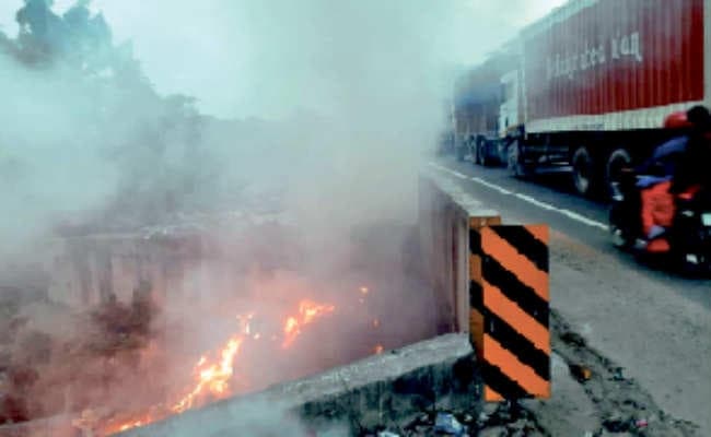 हाइवे किनारे कूड़ा में लगायी आग, विषाक्त धुआं से लोग परेशान