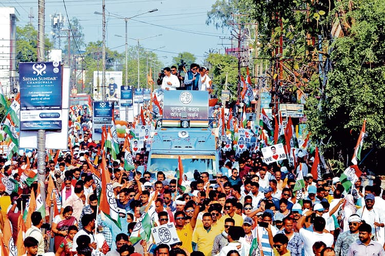 आसनसोल. तृणमूल के राष्ट्रीय महासचिव अभिषेक बनर्जी ने कहा कि 10 वर्षों में डायमंड हार्बर लोकसभा केंद्र को पूरे देश में एक नंबर बनाया है. आसनसोल सीट पर तृणमूल उम्मीदवार शत्रुघ्न सिन्हा को विजयी बनाएं, आसनसोल की जिम्मेदारी अपने कंधे पर वह लेंगे. वर्ष 2014 में नरेंद्र मोदी ने आसनसोल पोलो ग्राउंड में सभा कर कहा था कि मुझे बाबुल दीजिए. लोगों ने बाबुल दिया, लेकिन बाबुल ने उनका हाथ छोड़कर दीदी की गारंटी पर भरोसा जताया. दो वर्षों में आसनसोल में जिस तेजी से विकास हुआ उसे और भी गति मिलेगी. भाजपा विभाजन की राजनीति करती है. गरीबों के पेट पर लात मारी है. न्यायपालिका के एक श्रेणी का उपयोग करके गरीबों से नौकरी छीन ली, इस आदेश पर सुप्रीम कोर्ट ने स्थगनादेश लगाकर नौकरी को बहाल रखा है. हमलोगों ने वादा किया था कि मेधा सूची में रहे एक भी किसी की नौकरी नहीं जाने देंगे, वह वादा निभाया है. शुक्रवार को आसनसोल लोकसभा सीट से तृणमूल उम्मीदवार शत्रुघ्न सिन्हा के समर्थन में रोड शो के दौरान लोगों को संबोधित करते हुए श्री बनर्जी ने ये बातें कही. आसनसोल जीटी रोड पर उषाग्राम से हॉटन रोड मोड़ तक आयोजित इस शो में उनके साथ उम्मीदवार श्री सिन्हा, राज्य के कानून मंत्री मलय घटक, बाराबनी के विधायक सह आसनसोल के मेयर विधान उपाध्याय, रानीगंज के विधायक सह आसनसोल दुर्गापुर विकास प्राधिकरण के चेयरमैन तापस बनर्जी, पांडवेश्वर के विधायक सह तृणमूल के जिलाध्यक्ष नरेंद्रनाथ चक्रवर्ती, जामुड़िया के विधायक हरेराम सिंह उपस्थित थे. तृणमूल महासचिव श्री बनर्जी ने कहा कि नरेंद्र मोदी अपने भाषण में कहते दिख रहे हैं कि 10 साल का कार्यकाल तो ट्रेलर है. इस ट्रेलर में रसोई गैस 400 रुपये से हजार पार हो गया, डीजल 40 रुपये से 92 रुपये प्रति लीटर, पेट्रोल 50 रुपये से 105 रुपये लीटर, अंडा तीन रुपये से सात रुपये पीस, चायपत्ती 100 से 280 रुपये किलो, रहर दाल 60 रुपये से 170 रुपये पहुंच गया, ट्रेलर यदि यह है तो क्या कोई पूरी फिल्म देखना चाहेगा? बंगाल को केंद्र से हमेशा ही अवहेलना का शिकार होना पड़ा है. दो हजार रुपये महिलाओं को देकर संदेशखाली की घटना को बनाया गया. अब महिलाएं कह रही हैं कि उनके साथ कोई दुष्कर्म नहीं हुआ है. जबरन झूठा मामला दर्ज कराया गया. बंगाल की छवि को नष्ट करने का प्रयास किया है, इसका जवाब 13 मई को देना होगा. सिर्फ जीत ही नहीं यह सुनिश्चित करना होगा कि जीत का अंतर पिछली बार से ज्यादा हो.