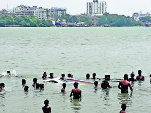 बताया जा रहा है कि रविवार सुबह करीब 7.15 बजे हुई इस घटना में कार को गंगा नदी में समाते हुए देखकर भीतर आतंकित होकर कार के साथ खुद भी डूब जाने के डर से आयुष शोर मचाकर घाट के आसपास खड़े लोगों से मदद मांगने लगा. इसके कारण कुछ पल के लिए वहां अफरातफरी की स्थिति व्याप्त हो गयी.