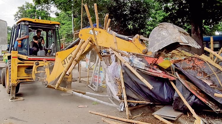 राज्य की मुख्यमंत्री ममता बनर्जी के निर्देश के बाद आसनसोल दुर्गापुर विकास प्राधिकरण (एडीडीए) की ओर से अतिक्रमण अभियान लगातार जारी है. अभियान के तहत सड़क किनारे अस्थाई दुकानों, गुमटियों को जेसीबी लगाकर हटा दिया गया. वहीं अभियान के तहत सरकारी जमीन पर बने राजनीतिक पार्टी कार्यालयों को भी ध्वंस कर दिया गया. मंगलवार को सिटी सेंटर बस पड़ाव, स्मार्ट बाजार, फूड मार्ट, डीसी सिनेमा हॉल के आसपास की दुकानों को जेसीबी लगाकर हटाया गया. अभियान के तहत अड्डा के अधिकारियों के अलावा पुलिस बल मौके पर मौजूद था. अड्डा की ओर से लगातार अभियान चलाये जाने से छोटे व्यवसायियों में भय व दहशत व्याप्त है. अड्डा का निर्देश मिलने के बाद से ही अधिकांश दुकानदार अपनी-अपनी दुकान खुद ही हटाने में जुट गये हैं. अभियान शुरू करने से पहले अड्डा द्वारा माइकिंग कर तीन दिनों के भीतर सरकारी जमीन को खाली करने का निर्देश दिया जा रहा है.निर्देश के बाद यदि कोई जमीन खाली नहीं कर रहा है तो उसके ढांचे को जेसीबी लगाकर हटा दिया जा रहा है. इसके पहले गांधी मोड़ के समीप हेल्थ वर्ल्ड अस्पताल के आसपास अस्थाई दुकानों को जेसीबी लगाकर ध्वंस कर दिया गया था. अभियान से कई लोगों ने तीखी प्रतिक्रिया देते हुए कहा कि सरकार के इस अभियान से गरीब लोगों पर दुखों का पहाड़ टूट पड़ा है. लंबे समय से अस्थाई तरीके से दुकान लगाकर वे परिवार चला रहे थे. सरकार ने उसे ध्वस्त कर दिया है. इससे वे बेरोजगार हो गये है. सरकार को उनके लिए कोई व्यवस्था करना चाहिए.