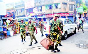 कोलकाता. शनिवार को लोकसभा चुनाव के सातवें और आखिरी चरण के मतदान के मद्देनजर पूरे महानगर में सुरक्षा व्यवस्था कड़ी कर दी गयी है. पुलिस की तरफ से ऊंची इमारतों से लेकर महानगर की विभिन्न गलियों तक सेंट्रल फोर्स के जवानों के साथ पुलिस की टीम सख्त पहरेदारी कर रही है. पुलिस की तरफ से लोगों से कहा गया है कि किसी भी गड़बड़ी की जानकारी मिलने पर तुरंत पुलिस को 100 नंबर पर फोन कर सूचना दें. कुछ ही मिनटों में पुलिस की टीम वहां पहुंच जायेगी. इधर, महानगर के 64 इलाकों में नाका चेकिंग के जरिये पुलिस की टीम सख्त नजर रख रही है. विभिन्न इलाकों में होटल, गेस्ट हाउस व लॉज में पुलिस की टीम औचक जांच के लिए पहुंच रही है. सेंट्रल फोर्स के जवान गत गुरुवार रात से ही पूरे शहर में गश्त लगा रहे हैं.