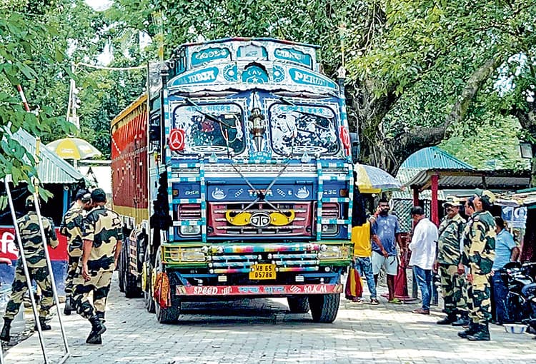 भारत अपने पड़ोसी देश बांग्लादेश को मुख्य रूप से सब्जियां, कॉफी, चाय, मसाले, चीनी, कन्फेक्शनरी, रिफाइंड पेट्रोलियम, रसायन, कपास, लोहा और इस्पात व वाहनों आदि का निर्यात करता है, जबकि मछली, प्लास्टिक, चमड़ा और रेडीमेड कपड़ों का आयात करता है.अनलोडिंग के बाद सीमांत क्षेत्र में फंसे ट्रकों की वापसी