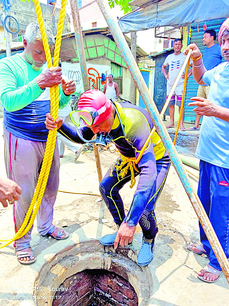हावड़ा. हावड़ा नगर निगम के इतिहास में पहली बार भूमिगत नालों (अंडरग्राउंड ड्रेनेज) की सफाई के लिए गोताखोर को नीचे उतारा गया. बताया जा रहा है कि मध्य हावड़ा के बेलिलियस रोड से इच्छापुर पानी टंकी तक भूमिगत नालों के अंदर कंक्रीट स्लैब देखा गया. इसी स्लैब को तोड़ने के लिए गोताखोर को उतारा गया. नालों के अंदर सीमेंट से बना यह स्लैब कहां से आ गया, इसका जवाब किसी के पास नहीं है. इस बारे में पूछे जाने पर निगम के प्रशासनिक बोर्ड के चेयरमैन डॉ सुजय चक्रवर्ती ने बताया कि वह भी अचंभित हैं. उन्होंने बताया कि पिछले महीने इसका खुलासा हुआ. भूमिगत नालों के अंदर सीमेंट का स्लैब होने से जलजमाव की समस्या हो रही थी और बारिश का पानी नहीं निकल रहा था. इसी स्लैब को तोड़ने के लिए गोताखोर को उतारा गया. डॉ चक्रवर्ती ने कहा कि बेलिलियस रोड से इच्छापुर पानी टंकी तक लगभग डेढ़ किमी भूमिगत नालों के अंदर कई कंक्रीट स्लैब देखे गये हैं. साथ ही प्लास्टिक सहित विभिन्न अपशिष्ट जमा होने के कारण नाला लगभग बंद हो गया है. उन्होंने कहा कि छह लाख की लागत से यह काम तीन सप्ताह के भीतर पूरा हो जायेगा. इसके पूरा होते ही वार्ड 19, 20, 21 और 22 में जल जमाव की समस्या खत्म हो जायेगी.