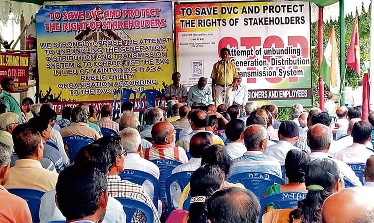 डीवीसी द्वारा अधिकृत डीवीसी कर्मचारी संघ, सीटू द्वारा संचालित श्रमिक संघ, यूटीयूसी द्वारा संचालित स्टाफ एसोसिएशन के साथ-साथ श्रमिक संगठनों और पेंशनर्स फोरम ने बुधवार को कोलकाता के डीवीसी टावर्स के सामने धरना प्रदर्शन में हिस्सा लिया. संगठनों के नेताओं ने दिन भर विरोध प्रदर्शन किया. यूनियन के मुताबिक गत 18 जुलाई को केंद्रीय ऊर्जा मंत्री मनोहरलाल खट्टर ने डीवीसी के मुख्यालय, डीवीसी टावर्स में कंपनी के चेयरमैन एस सुरेश कुमार और अन्य उच्चाधिकारियों के साथ बैठक कर सुझाव दिया कि डीवीसी को एक कॉर्पोरेट निकाय में बदल दिया जाना चाहिए. इसे बिजली उत्पादन, पारेषण और वितरण के तीन प्रभागों में विभाजित किया जाना चाहिए. उन्होंने तर्क दिया कि केवल तभी डीवीसी अधिक लाभदायक कंपनी बन सकेगी. मीडिया में इसकी खबर आने के बाद डीवीसी के श्रमिक संगठन नाराज हो गये.यूनियनों ने जतायी नाराजगी