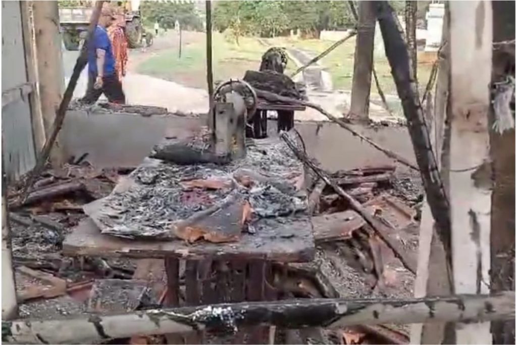 सिलाई मशीन और सेंटर पूरी तरह जलकर हुआ राख