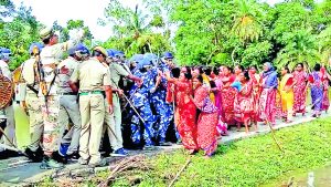 संदेशखाली में पुलिस के खिलाफ सड़क पर उतरीं महिलाएं, हुई झड़प
