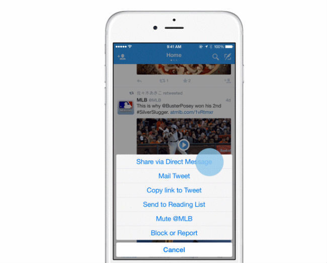 इस फीचर का इस्तेमाल करने के लिए ट्विट को लॉन्ग प्रेस करना पडेगा. इसके बाद स्क्रीन पर आए ‘शेयर वाया डायरेक्ट मैसेज’ ऑप्सन से ट्विट शेयर किया जा सकेगा. जिन्हें आपने ट्विट शेयर किया है, उनके डिवाइस पर ‘पुश’ नोटिफिकेसन का मैसेज आएगा, फिर स्वत: यह मैसेज स्क्रीन पर दिखने लगेगा. इसके साथ ही ट्विटर पर आपके फॉलोवर भी आपको पर्सनल ट्विट शेयर कर सकते हैं.