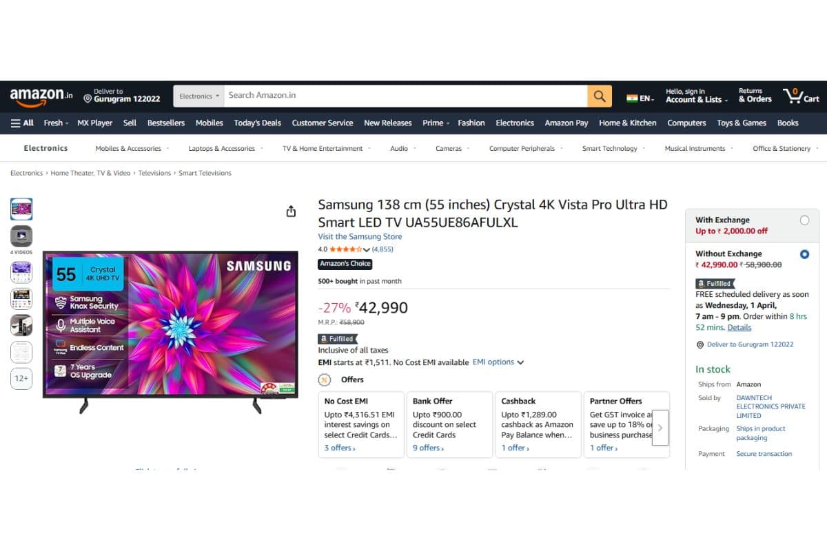 घर बैठे बड़े स्क्रीन पर IPL, अपनी पसंदीदा वेब सीरीज या फिल्म देखने का मजा ही कुछ और है. छोटे स्क्रीन पर वो जोश और एंटरटेनमेंट कहीं खो सा जाता है. अगर आप भी यही महसूस कर रहे हैं, तो अब सही समय है अपने घर में बड़ा टीवी लाने का, वो भी कम दाम में. हमने आपके लिए 55 इंच के कुछ ब्रांडेड टीवी मॉडल्स की लिस्ट तैयार की है, जिन्हें आप जरूर चेकआउट कर सकते हैं. तो आइए, देखते हैं कौन-कौन से हैं ये ऑप्शन.