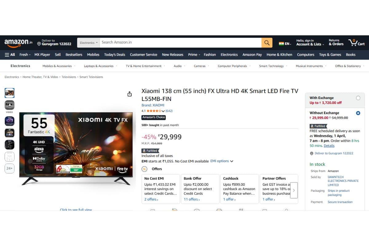 Xiaomi FX 55-inch 4K Fire TV में HDR10, MEMC और Vivid Picture Engine जैसी खूबियां मौजूद हैं. Fire TV OS के साथ यह स्मार्ट टीवी स्ट्रीमिंग ऐप्स और Alexa वॉइस कंट्रोल को भी आसानी से हैंडल करता है. 30 W के स्पीकर्स में Dolby Audio और DTS:X का सपोर्ट है, जो साउंड को काफी दमदार बनाता है.
