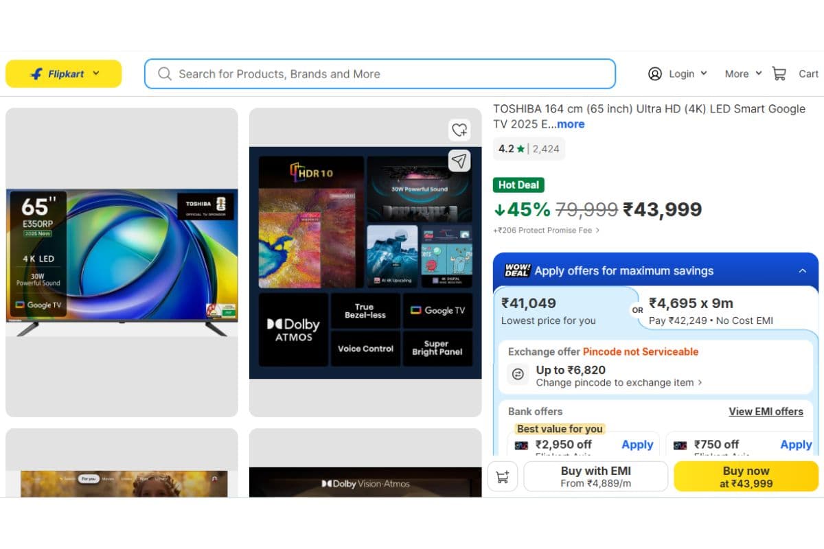 65 इंच के Smart TV पर धांसू डील, सस्ते हो गए LG, Toshiba जैसे ब्रांड के टीवी