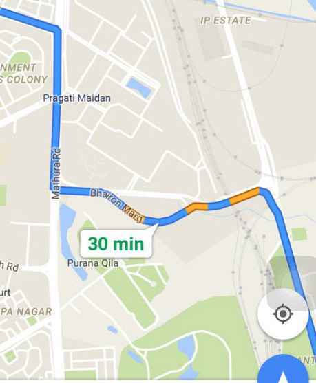 ( तस्वीर गूगलमैप स्नैपशॉट – प्रगति मैदान से होकर नयी दिल्ली रेलवे स्टेशन जाने वालारास्ताबंद है जबकि गूगल इसे अभी भी खुला दिखा रहा है)