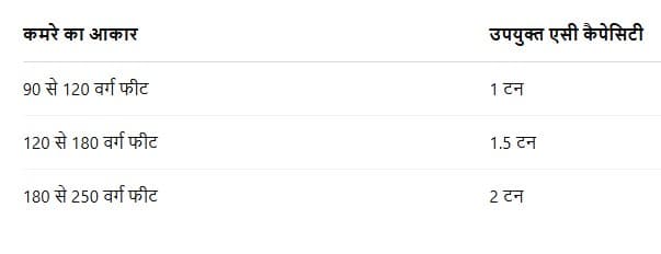2 टन एसी = 24,000 BTU प्रति घंटा