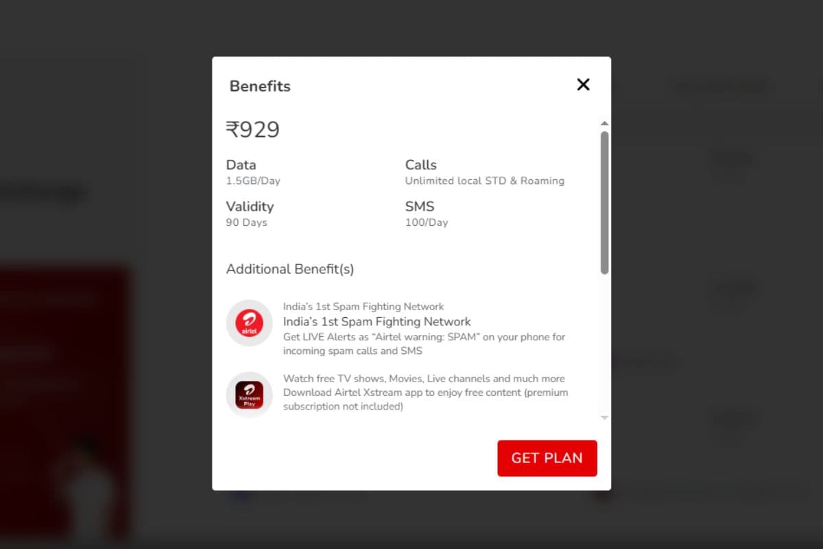Airtel का 929 रुपये वाला रिचार्ज