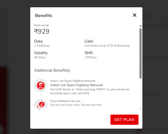 एयरटेल के इस 90 दिनों वाले प्लान की कीमत 929 रुपये है. महीने के हिसाब से देखा जाये, तो हर महीने 309 रुपये और डेली के हिसाब से हर दिन 10 रुपये का खर्च यूजर्स के पॉकेट पर पड़ेगा.