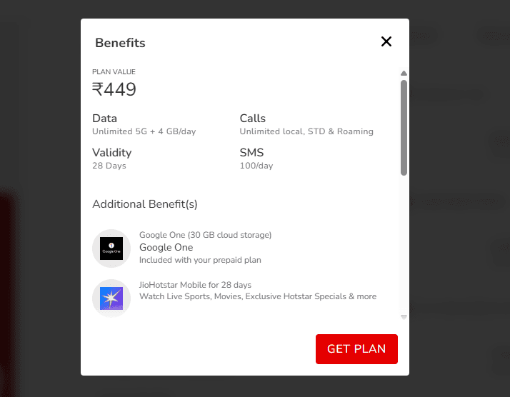 Airtel के डेली 4GB डेली डेटा प्लान में अनलिमिटेड कॉलिंग और डेटा के अलावा यूजर्स को 28 दिनों के लिए JioHotstar मोबाइल का फ्री सब्सक्रिप्शन, 30 GB Google One Cloud Storage का फ्री एक्सेस, Apple Music का फ्री एक्सेस, फ्री Spam कॉल और मैसेज अलर्ट, Perplexity AI Pro का फ्री सब्सक्रिप्शन और Airtel XStreame Play Premium सब्सक्रिप्शन मिलेगा.