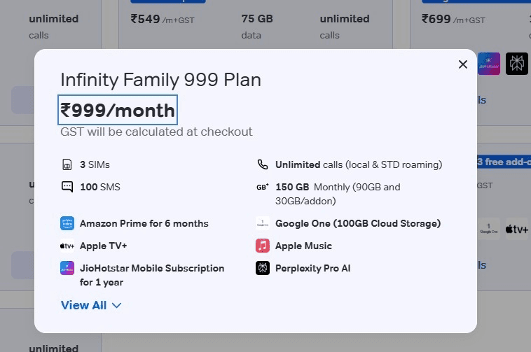 Infinity Family Plan या 999 रुपये वाला Family Plan चुनें.